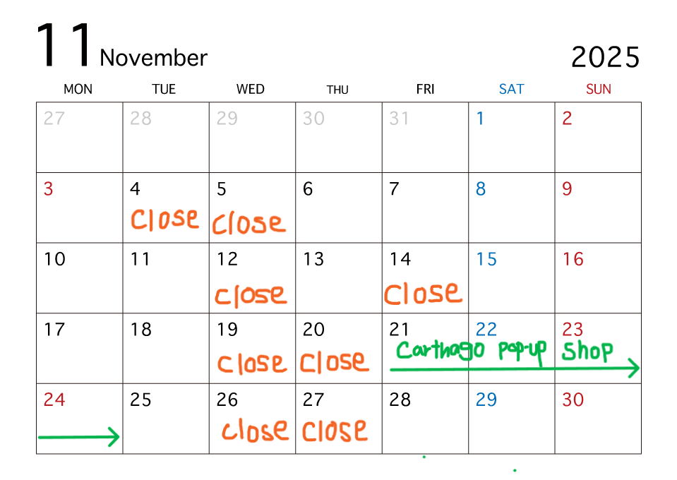 OPEN → 12:00-19:00 (日祝日,11/18(火),24(月)→18:00CLOSE)