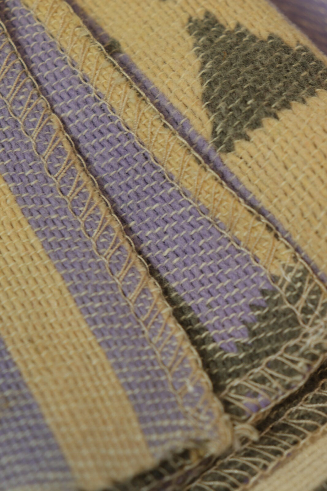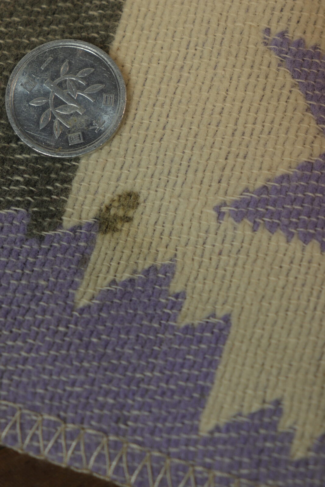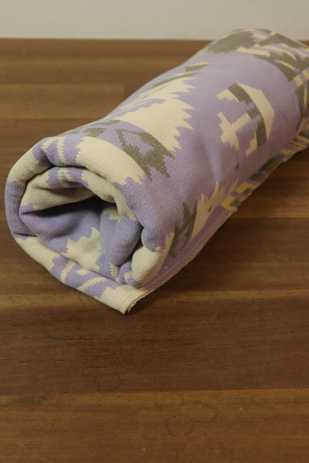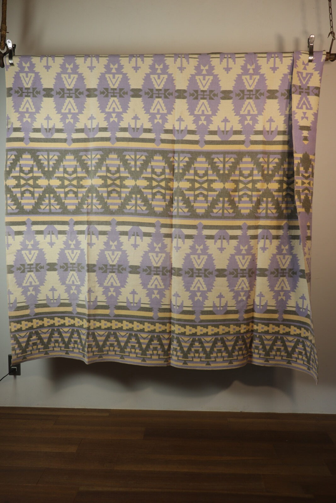 ビンテージのキャンプブランケットです。タグが無いので年代やブランドは不明ですがビーコンブランケットっぽいです。元はもう少し大きなサイズでしたが、端にダメージがあったのでその部分をカットしてステッチをかける補修を国内でした為、オリジナルより少し小さくなっています。キャンプブランケットの良いところは速乾性です。色、柄ともに良い感じです。