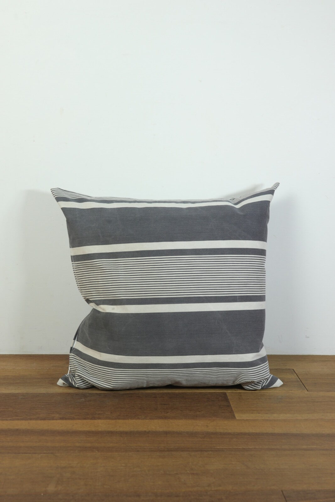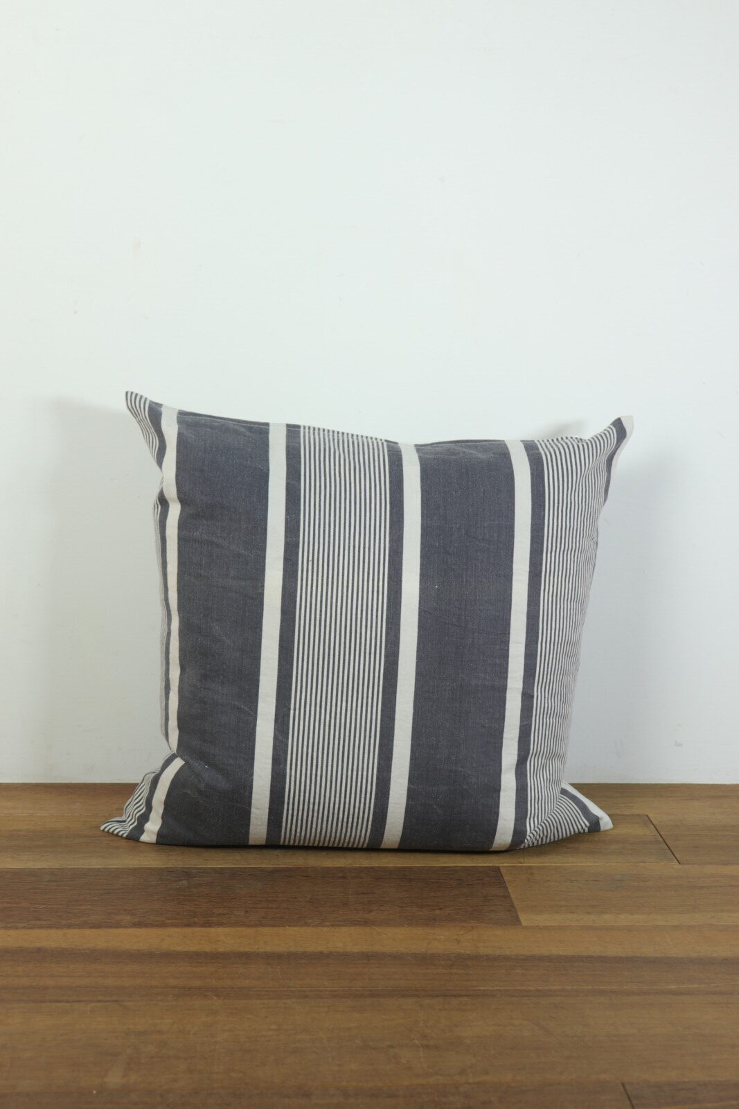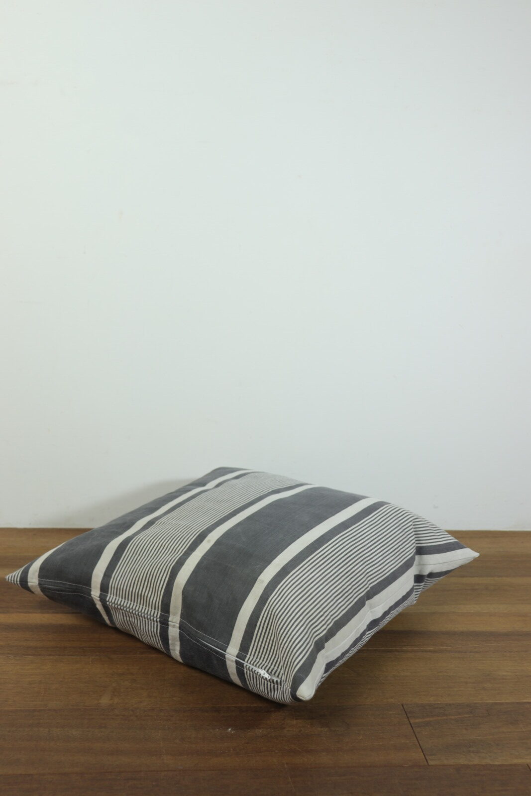 フランスの古いティッキング生地で作ったクッションです。インナークッションは羽根100%の現行品です。黒x白のティッキング生地は同系色は勿論、意外とどんなモノとあわせてもしっくりきますので、柄のモノや色目のあるモノと合わせて楽しんでいただけると思います。